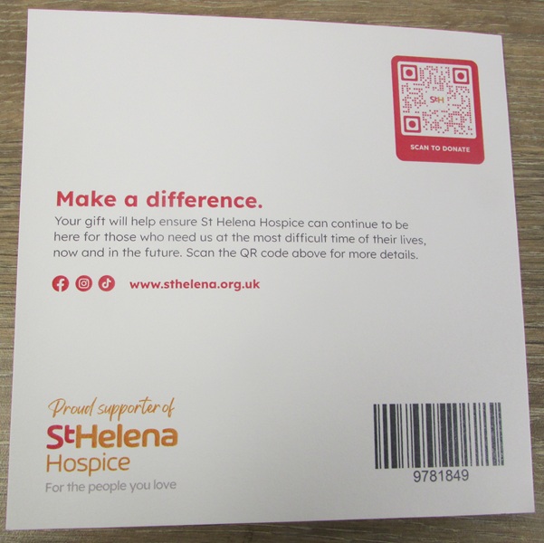 You receive a physical St Helena Greeting Card and gift the hospice £20.